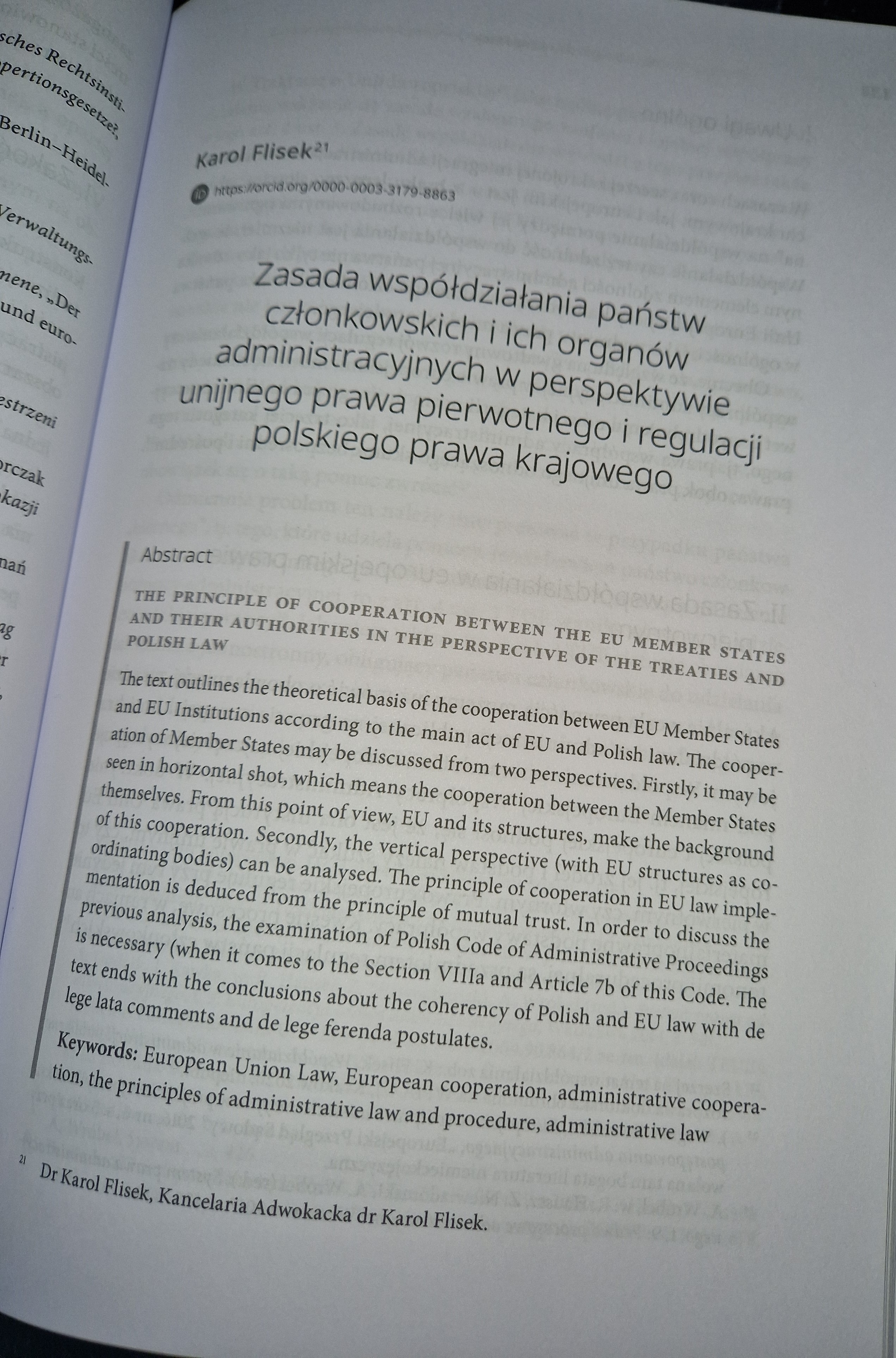 Z wielką przyjemnością pragnę poinformować o publikacji monografii pt "Zdolność administracyjna państwa członkowskiego i kandydata do Unii Europejskiej. Pojęcie, przejawy i determinanty", w której miałem swój skromny udział w postaci artykułu pt "Zasada współdziałania państw członkowskich i ich organów administracyjnych w perspektywie unijnego prawa pierwotnego i regulacji polskiego prawa krajowego".